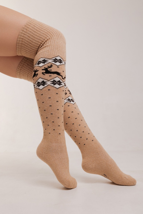Чулки песочные из 70% шерсти верблюда с оленями