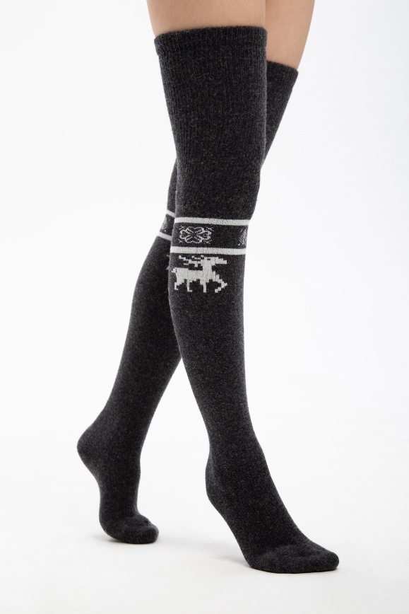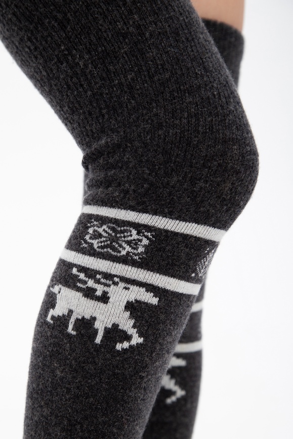 Чулки тёмно-синие из 70% шерсти яка с оленями