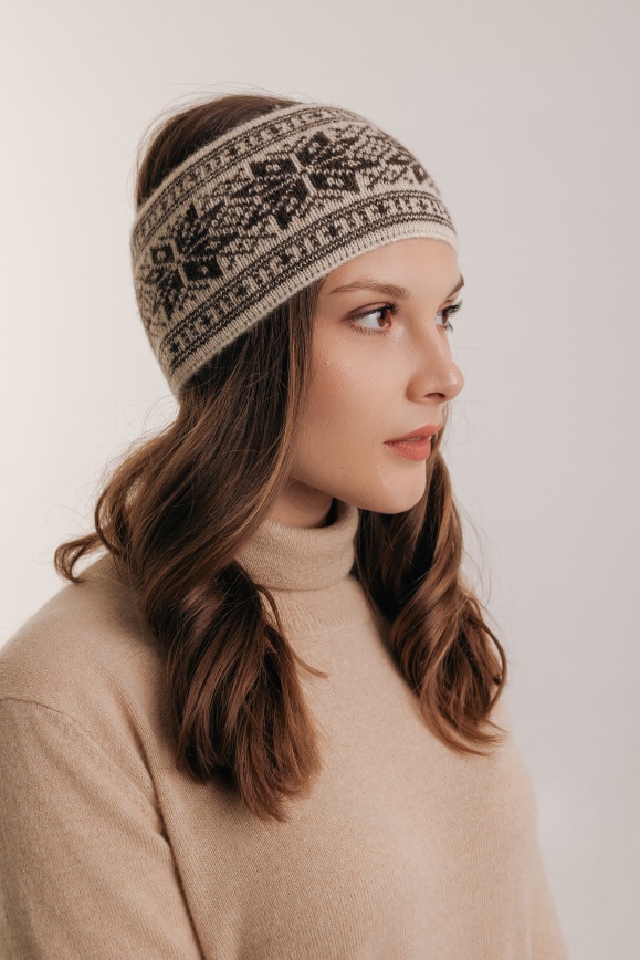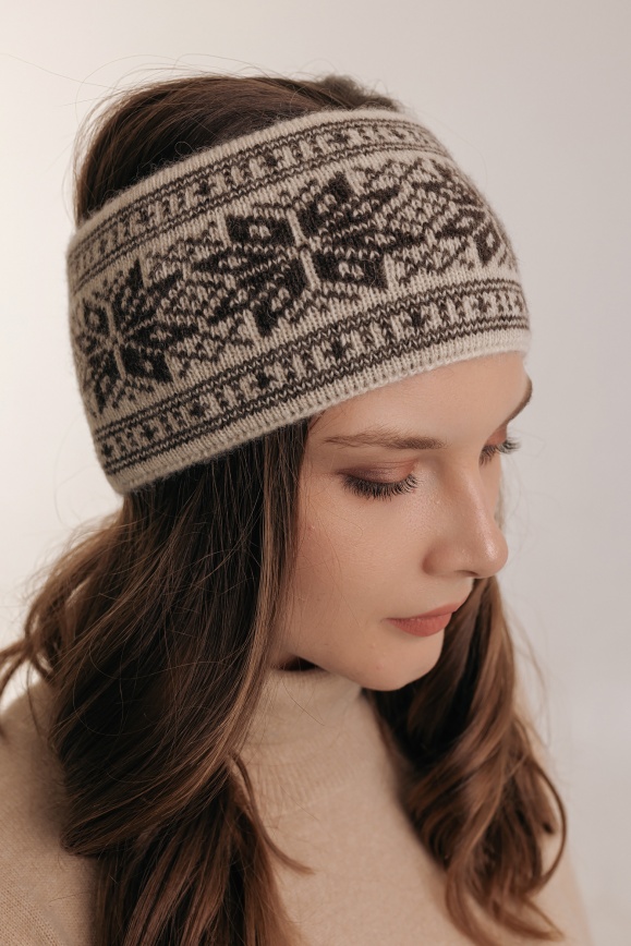 Наушники белые "Снежинка" из 100% шерсти яка