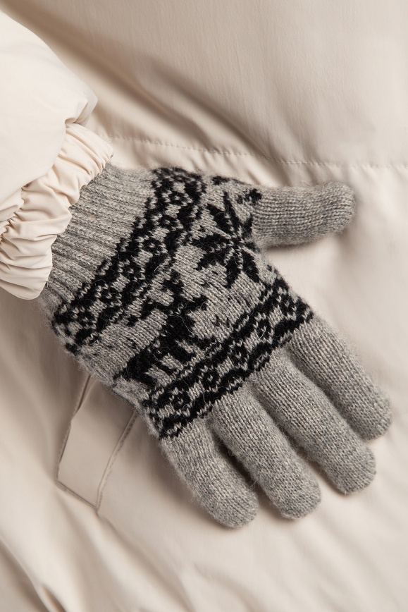 Перчатки серые "Снежинка" из 100% шерсти яка