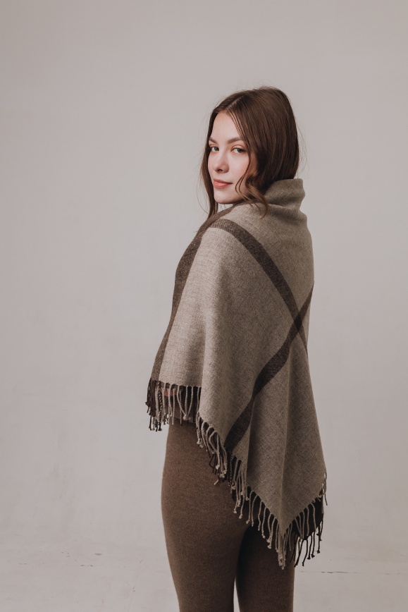 Платок коричневый из 100% шерсти яка