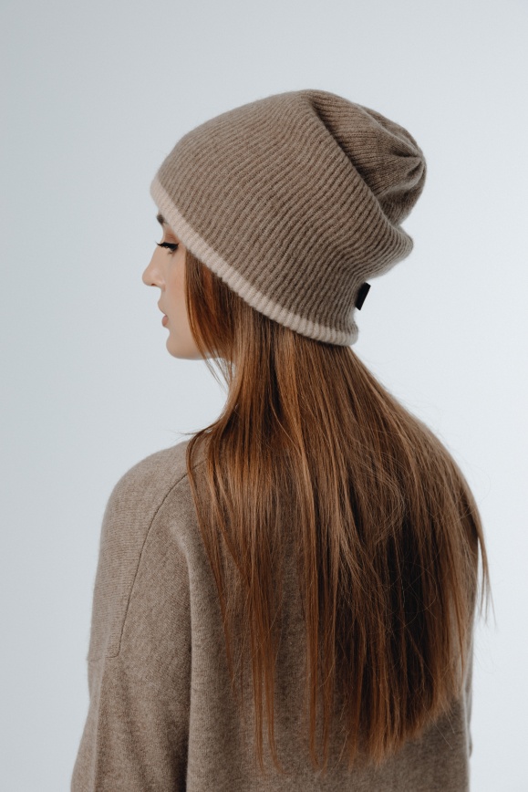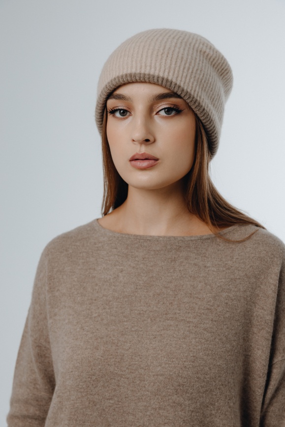 Шапка двухсторонняя из 100% кашемира бежевая