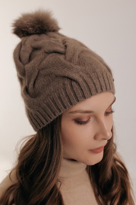 Шапка коричневая с пумпоном из кашемира