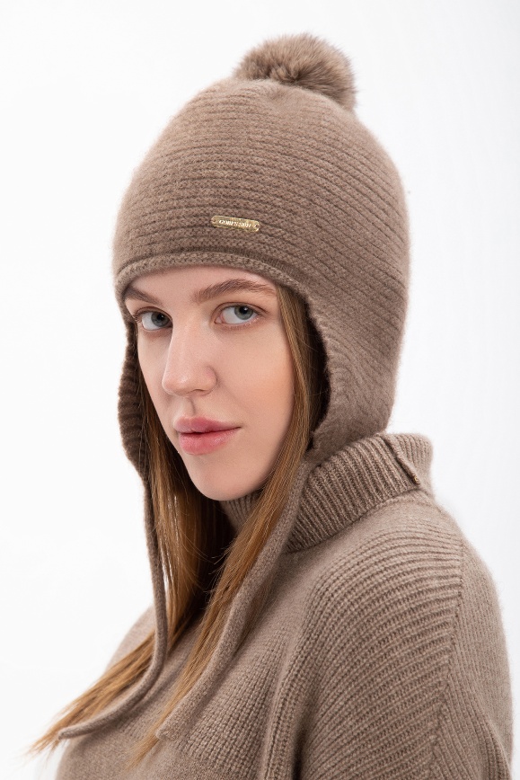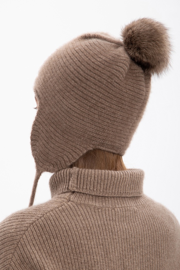 Шапка с пумпоном из кашемира цвета капучино