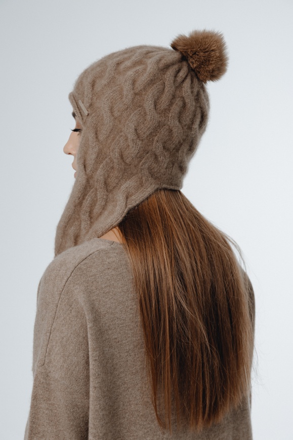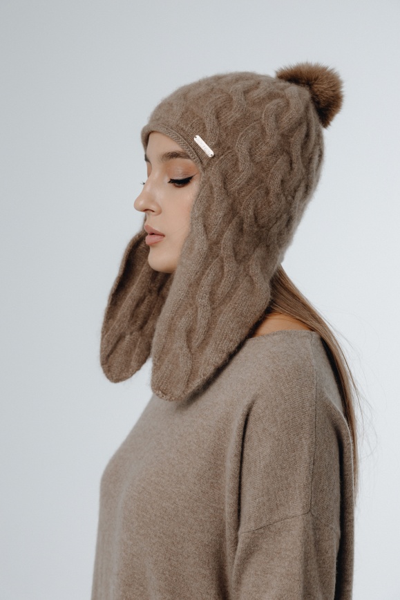Шапка с ушами из 100% кашемира цвета капучино