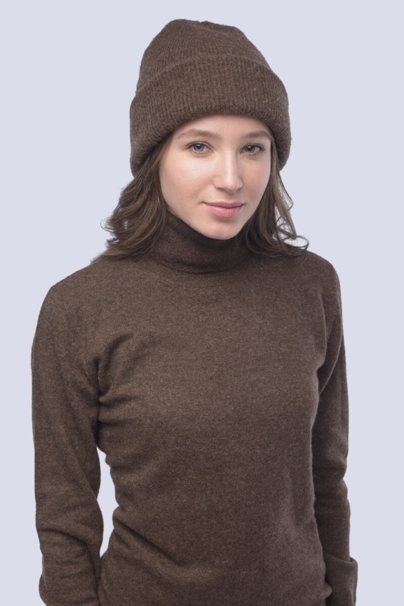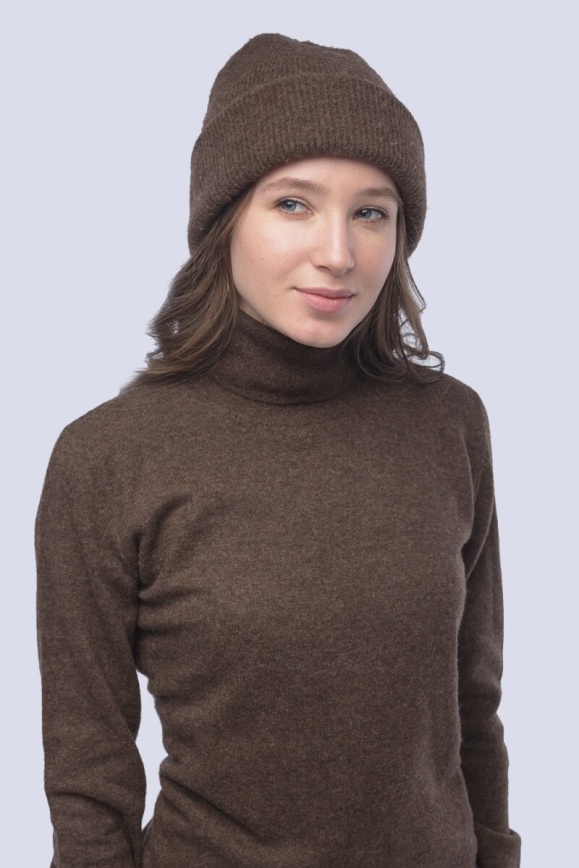 Шапка унисекс коричневая из 100% шерсти яка