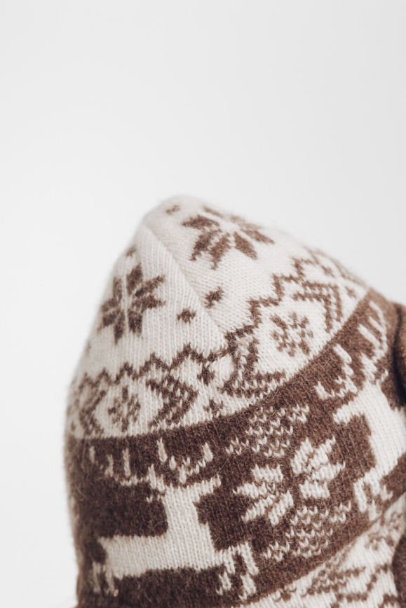 Шапка-ушанка белая с узором из 100% шерсти яка