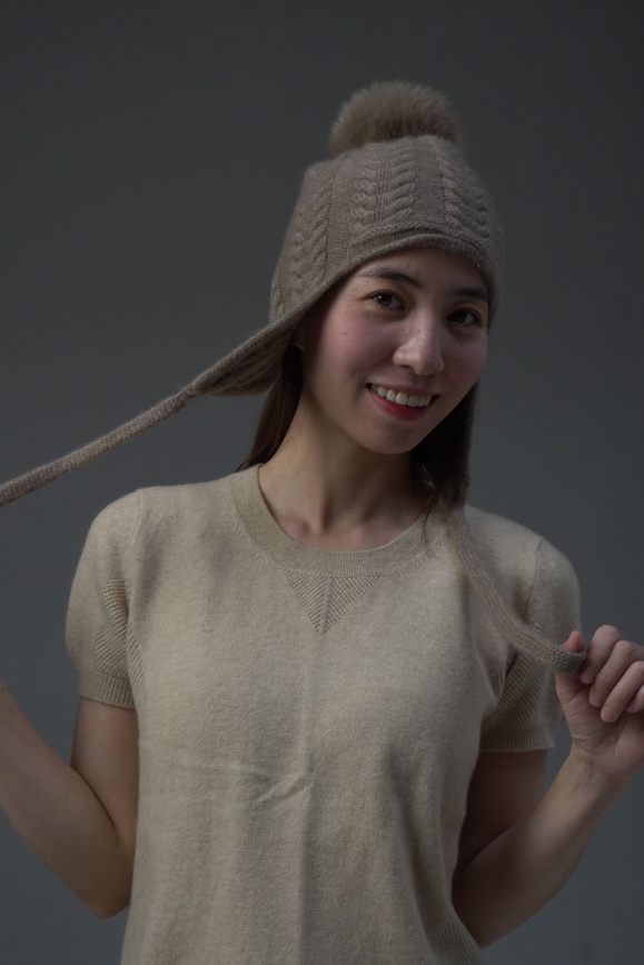 Шапка-ушанка из 100% кашемира цвета капучино