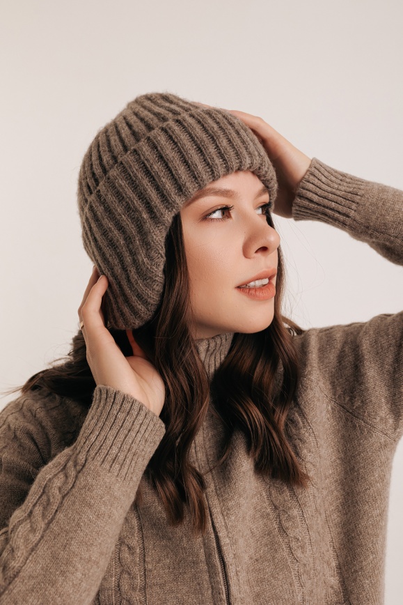 Шапка-ушанка из 100% шерсти яка цвета капучино
