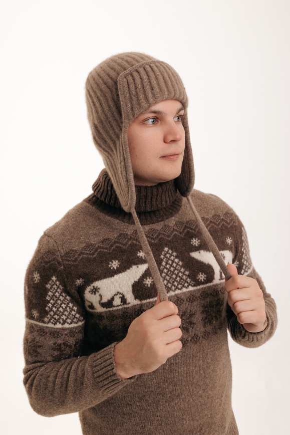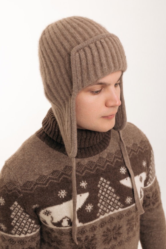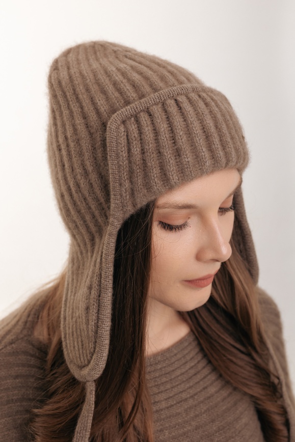 Шапка-ушанка из кашемира цвета капучино
