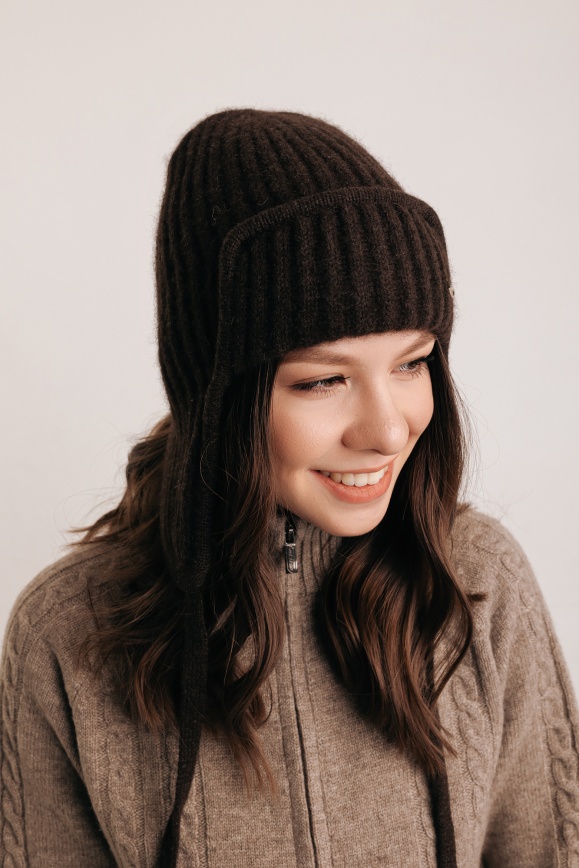 Шапка-ушанка коричневая из 100% пуха яка