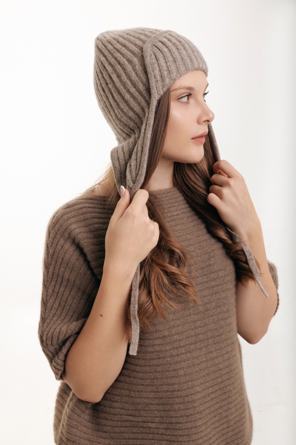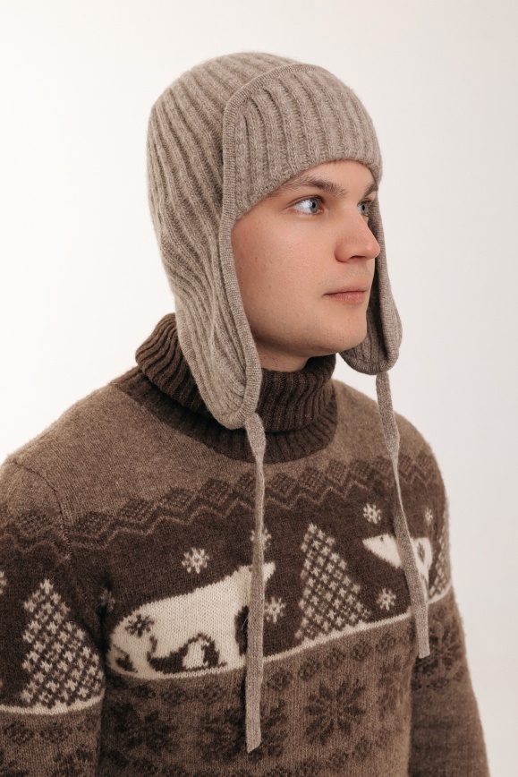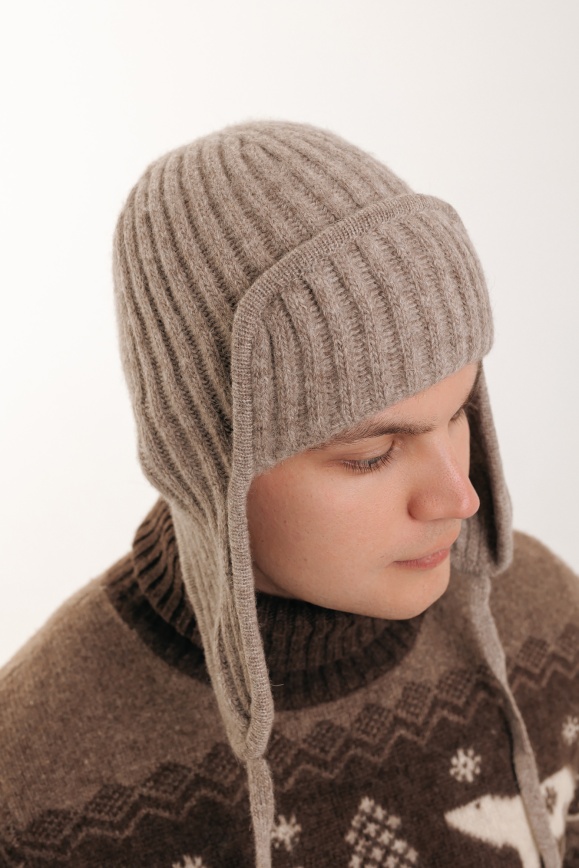 Шапка-ушанка серая из 100% шерсти яка