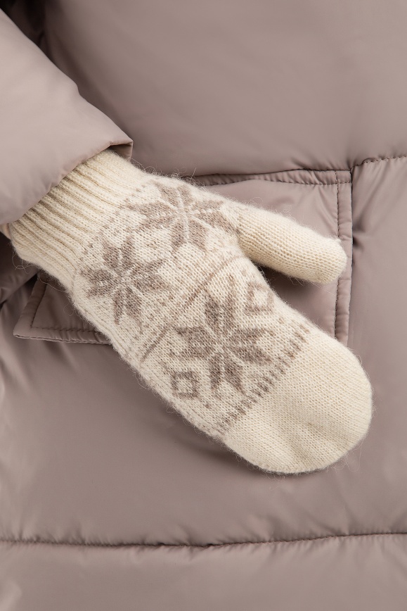 Варежки "Снежинка" белые из 100% шерсти верблюда