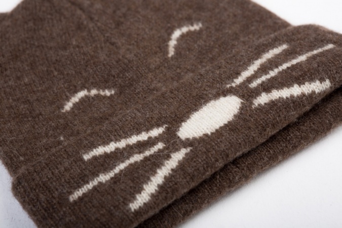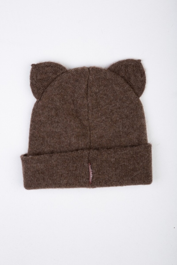 Шапка коричневая детская "Котик" из 100% шерсти яка