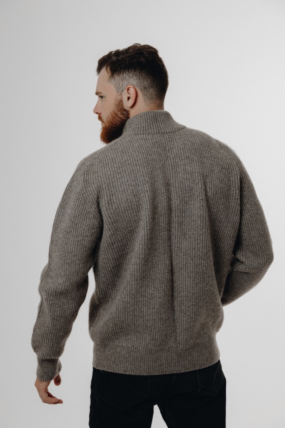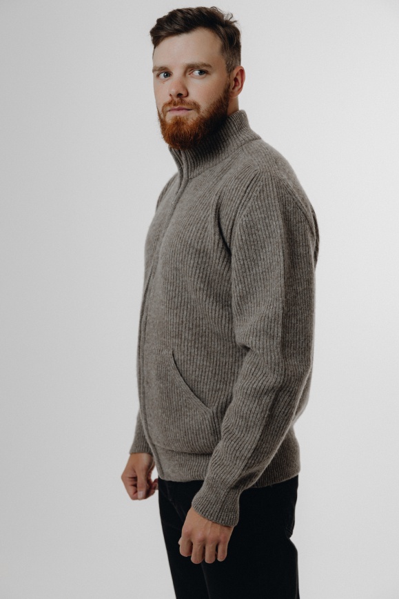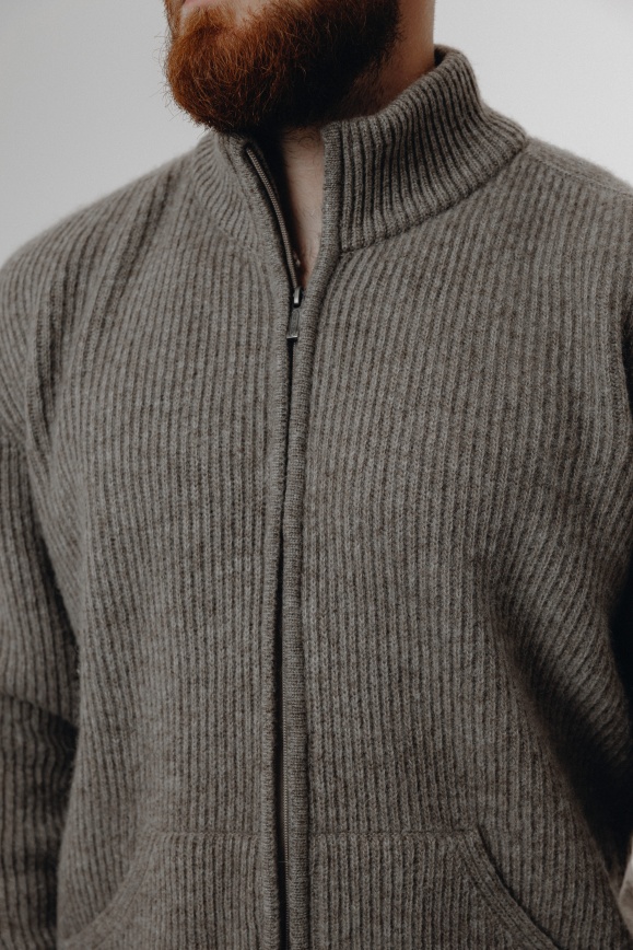 Кофта на молнии серая из 100% шерсти яка