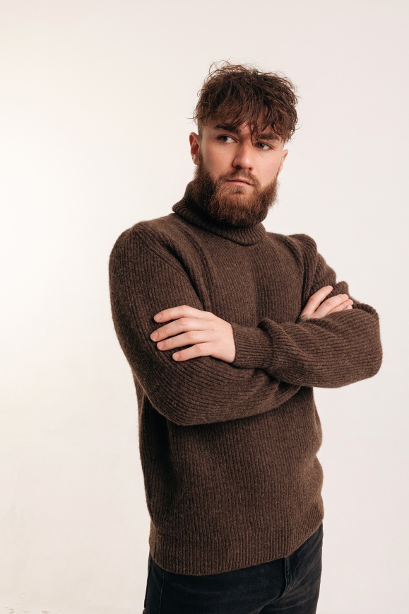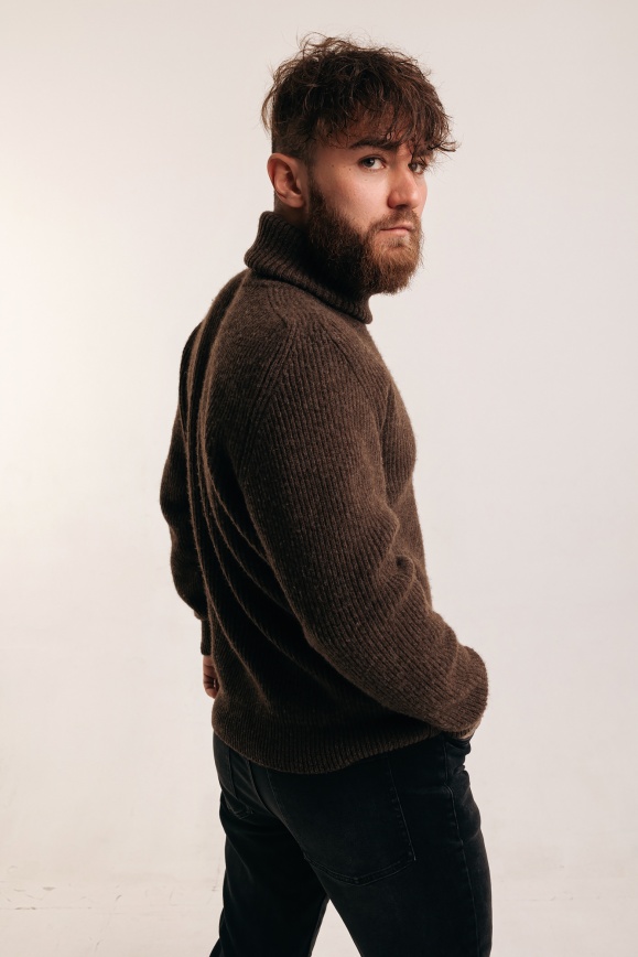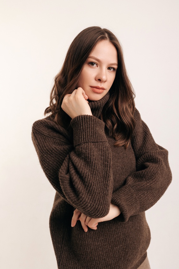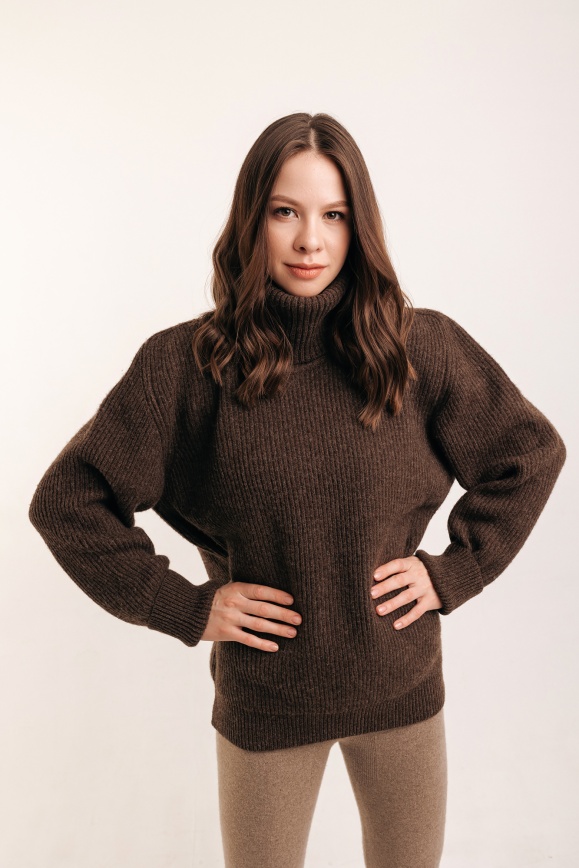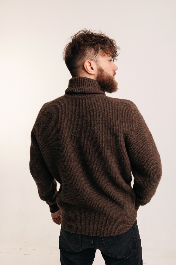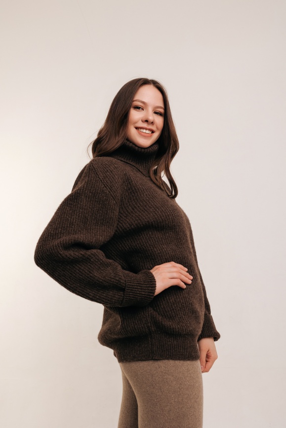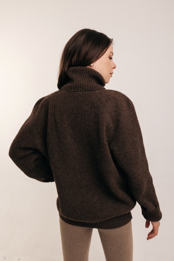 Свитер коричневый с горлом из 100% шерсти яка