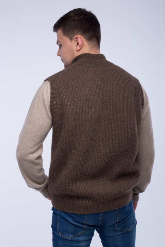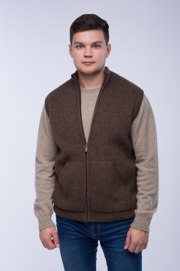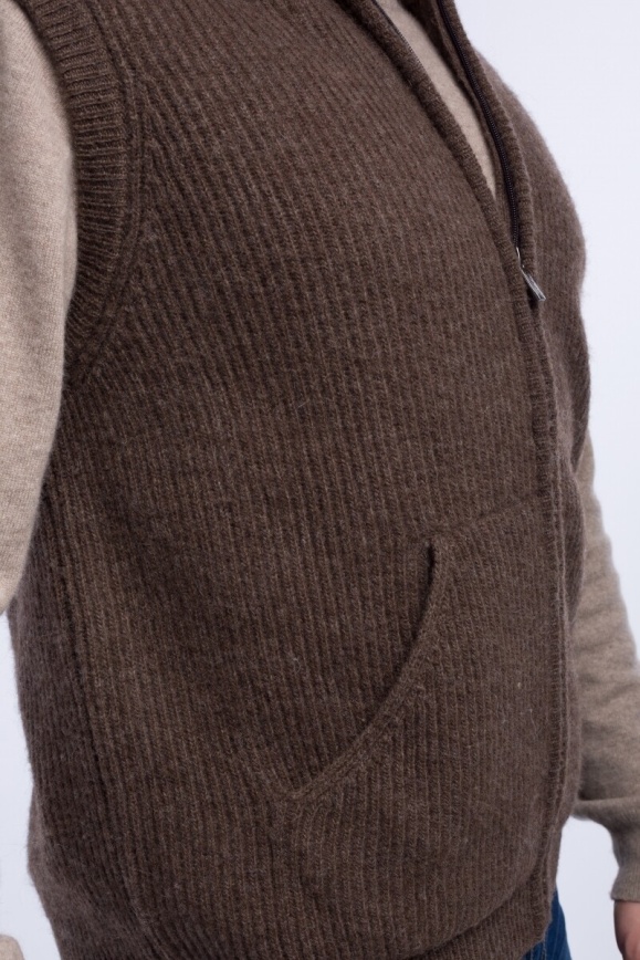 Безрукавка коричневая на молнии из 100% шерсти яка