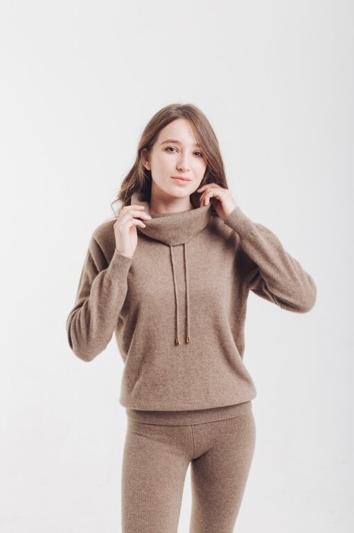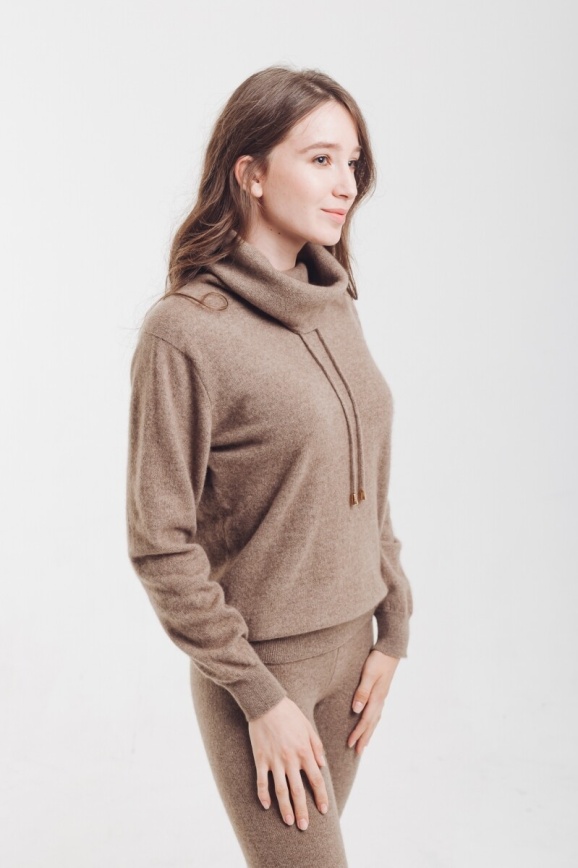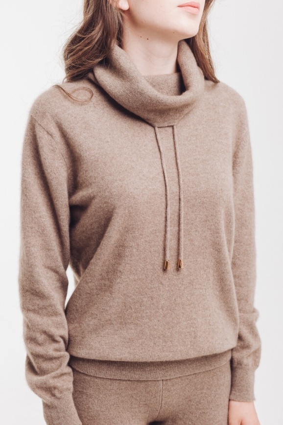 Кофта из кашемира с широким горлом цвета капучино