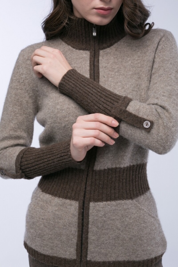 Кофта серая на молнии из 100% шерсти яка